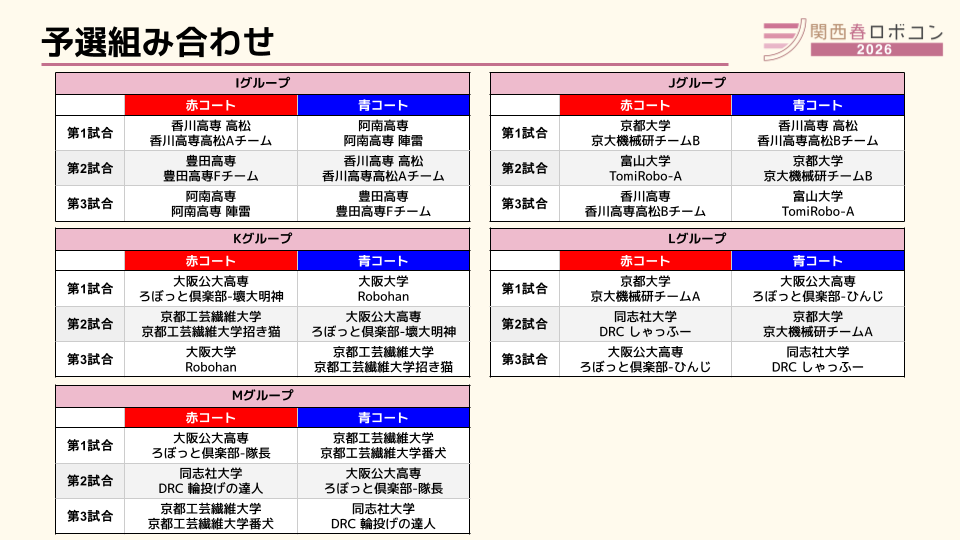 関西春ロボコン2026 当日案内